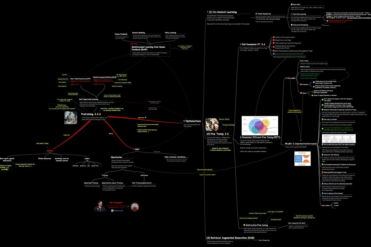 A detailed mindmap explaining pretraining and finetuning